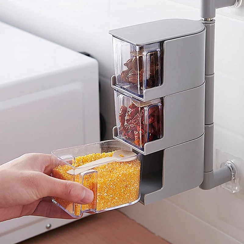 Food Storage Multi-Function Condiment Jars Spice Rack Creative Convenient Grain Rotating Salt Multi