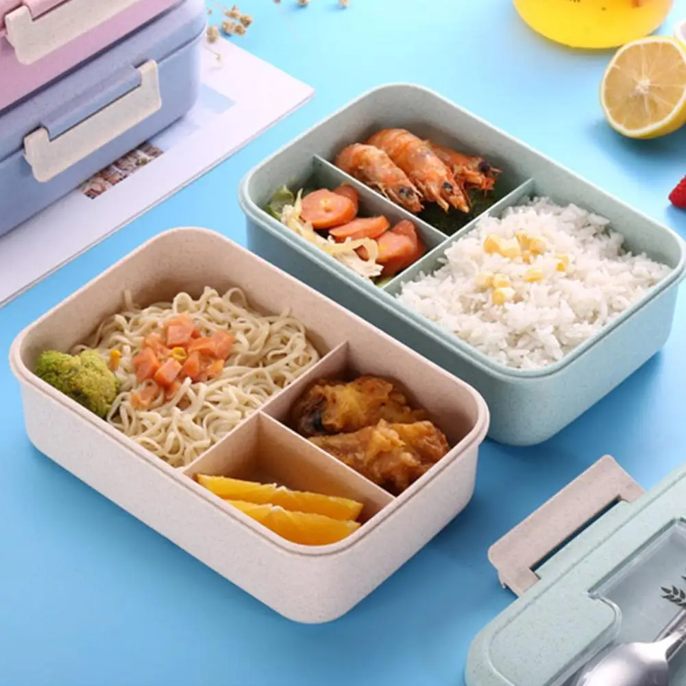 Protable Wheat Straw Environmental Lunch Box Food Container Microwave Heating Office Sealed Fresh 3