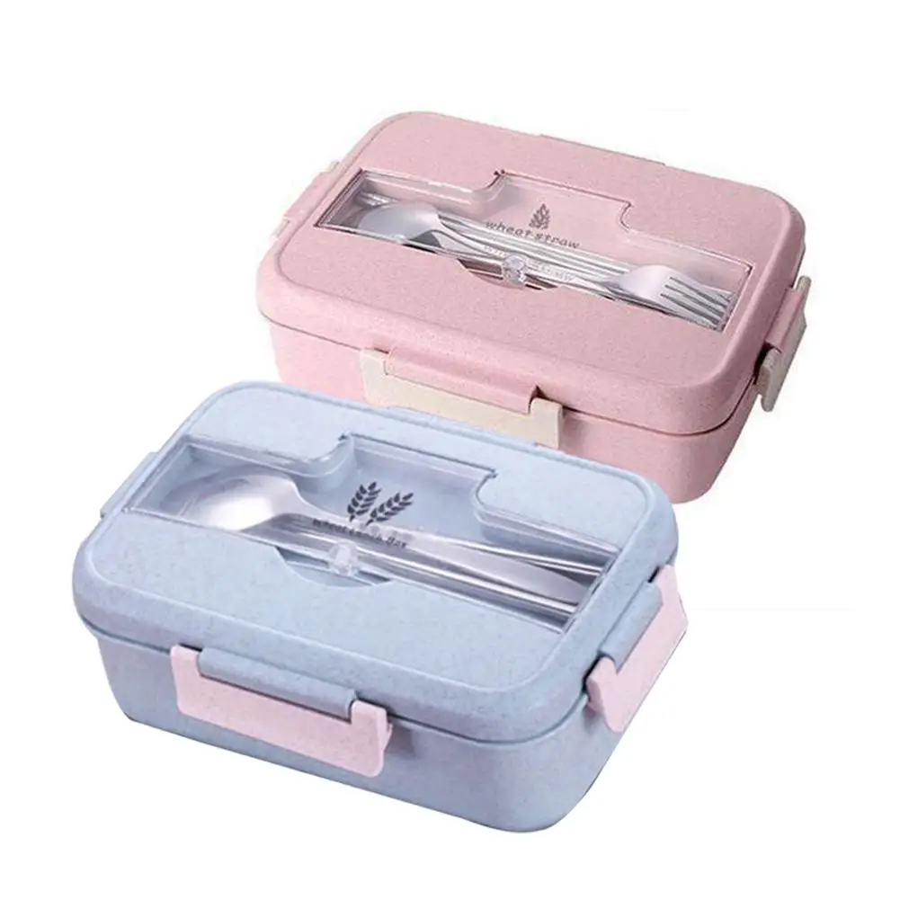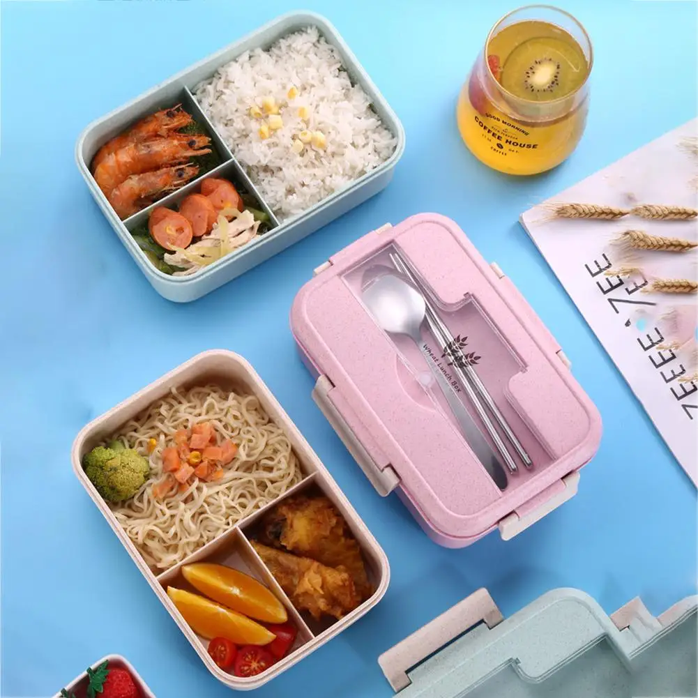 TOP Protable Wheat Straw Environmental Lunch Box Food Container Microwave Heating Office Sealed Fresh 3