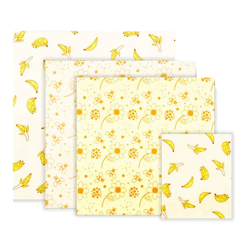 4 Pack Reusable Beeswax Food Wrap Kitchen Organic Sustainable Washable Food Storage Beeswax Wrap fo