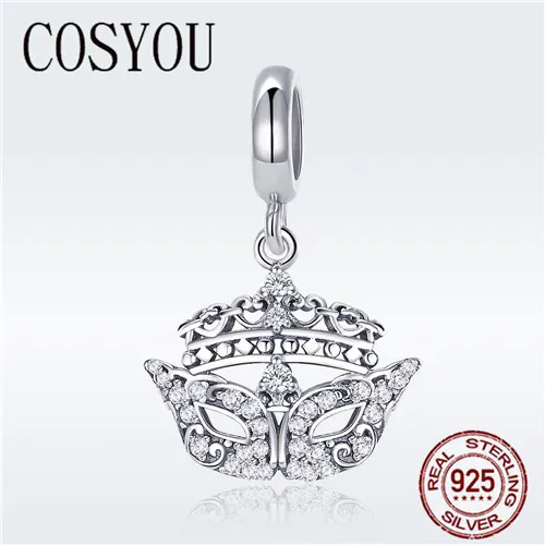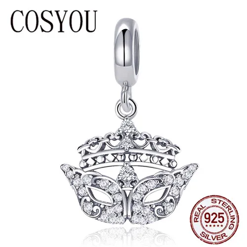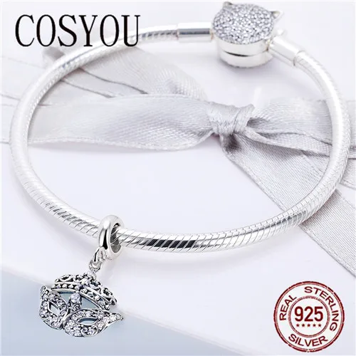 COSYOU Genuine 100% 925 Sterling Silver Gorgeous Mask Crystal Glasses Charm fit Women Bracelet & Ne