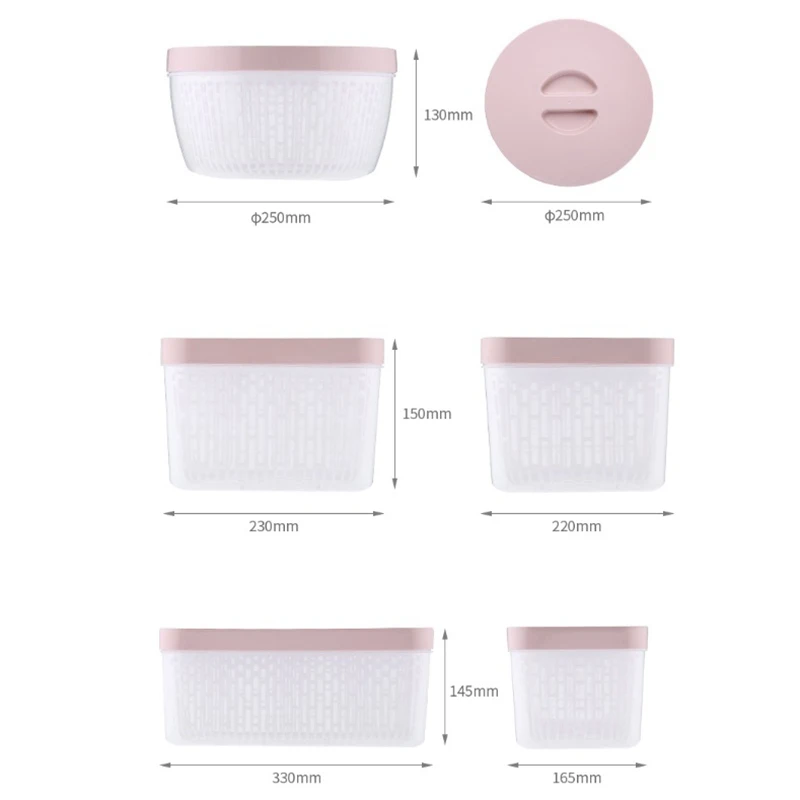 Double Layer Food Container with Drain Basket Multi-Capacity Household Fruits Vegetables Storage Co