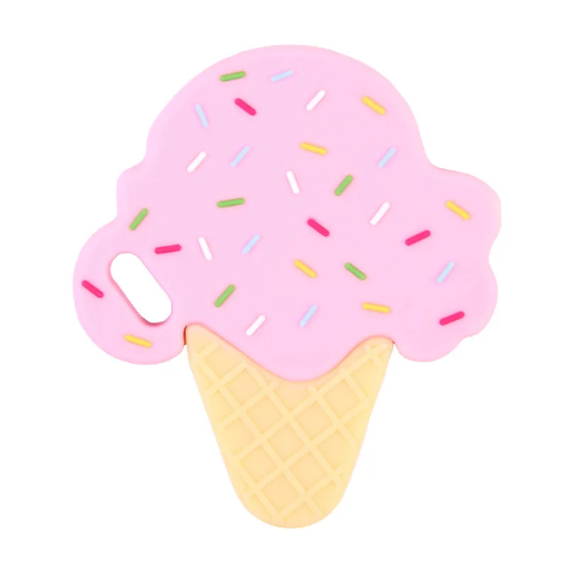 Safe Ice Cream Teether Food Grade Silicone Infant Baby Silicone Chew Charms Baby Ring Teether Kids