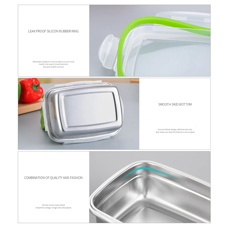 HOT Sale Stainless Steel Rectangular Storage Box Environmentally Friendly Portable Food Storage Container Re