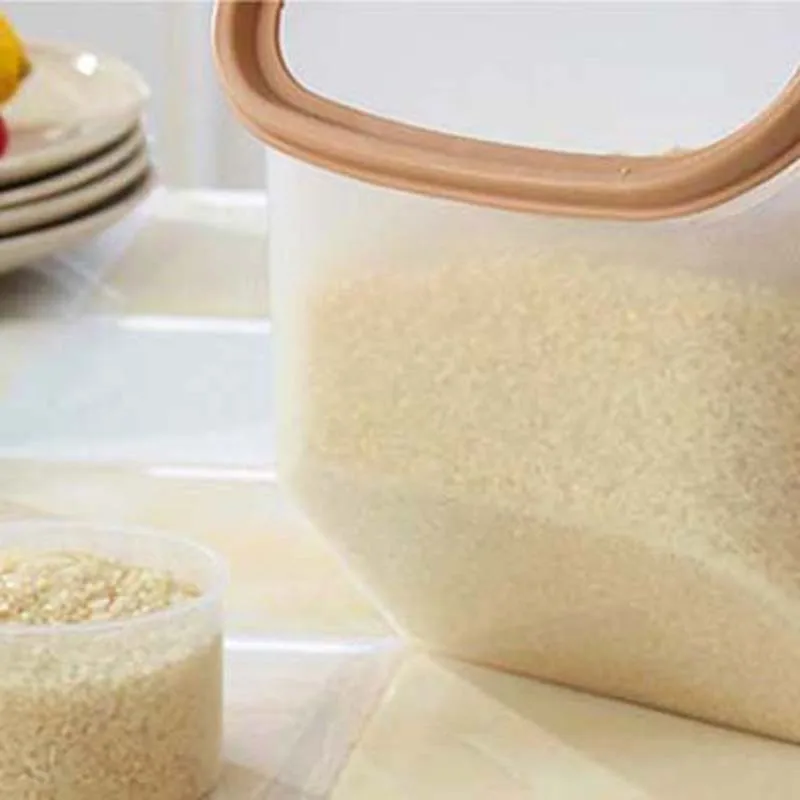 Kitchen Rice Fruits Storage Box Bucket Cereal Dry Food Keeper Container Spice Holders Sliding Lid w