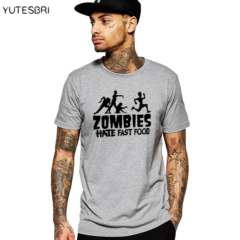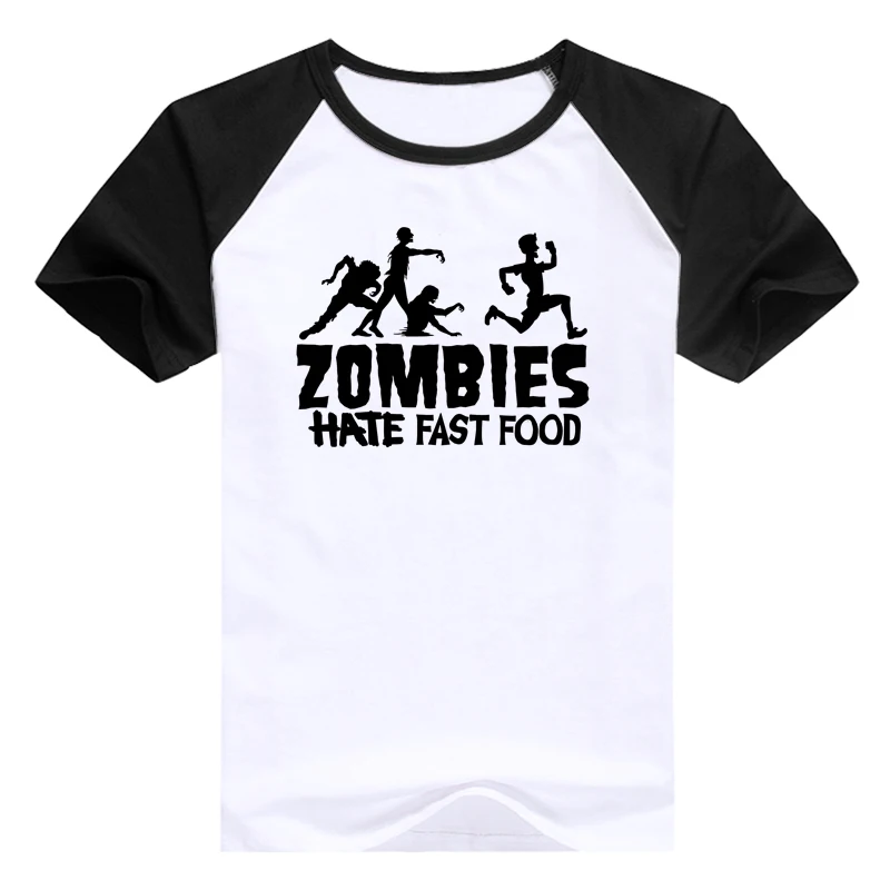 Novelty Raglan Ringer Tees Cotton Men T-Shirt Zombies Hate Fast Food Printing Men's T-shirt for Men